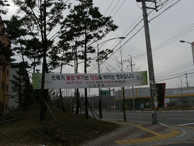 가. 어느 면사무소에서 걸어놓은 현수막( 쓰레기를 불법적으로 투기하는 사람은 양심을 버리는것이다.)사진