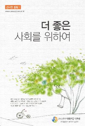 | 선사연은 '선사연칼럼'을 매주 한 두 편씩 홈페이지에 올리고, 칼럼읽기를 원하는 분들에게 보냅니다. 이번에 그 동안 배포한 '선사연칼럼'의 일부를 '더 좋은 사회를 위하여'라는 이름으로 묶어 첫 번째 책으로 발간합니다. [선사연칼럼]은 우리나라의 선진화를 위한 성찰과 염원, 비판과 제언들을 담고 있으며, 일부는 국가 정책과 제도개선에 이미 반영되고 있습니다. 선사연은 앞으로도 계속 칼럼집을 시리즈로 발간할 계획입니다. 선사연칼럼은 학생들에게 사회현상에 대한 다양하고 건전한 시각을 키워주는데도 큰 도움이 될 것이라고 믿습니다. |