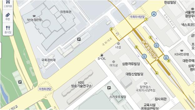 (지하철 9호선 국회 의사당 역 6번 출구로 나오셔서 국회 정문을 통과하시면