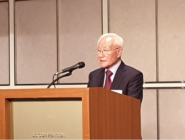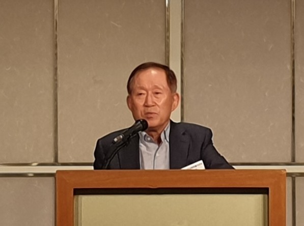 선사연 창립 10주년 축하 인사말을 하는 민계식 이사장(전 현대중공업 회장)
