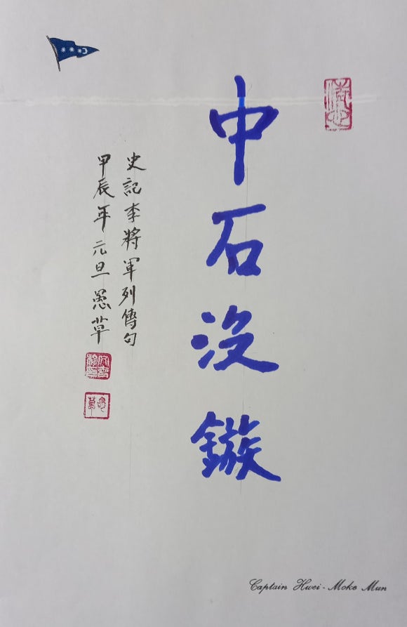 漢나라 장수 李廣이 호랑이로 알고 쏜 화살이 박힌 것은 실은 바위었다 고사에서 우리 국민 모두가 한 마음으로 결실을 이루어 내자는 의미에서 中石沒鏃을 신년휘호로 뽑았다.